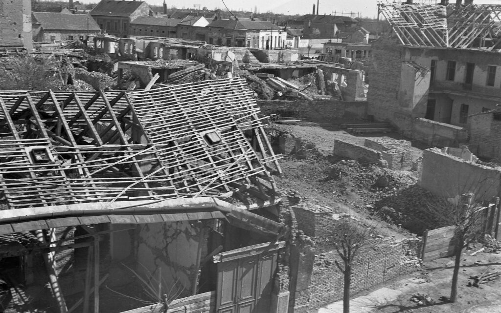 1944. június 2. Írta: hell1693 2024. június 2. Megosztás 0FacebookTwitterPinterestEmail 545 Nyolcvan éve Debrecen. Amikor a szövetségesek légiereje megtámadta városunkat. Közel kétezer debreceni áldozat. A 130 bombázó által ledobott bombák mérhetetlen károkat okoztak és az itt élő emberek lelkében és szívében is. Fotók: Fortepan / National Archives és meliusz.hu Megosztás 0 FacebookTwitterPinterestEmail Előző bejegyzés No war Következő bejegyzés Pestről fizetik és irányítják a baloldal debreceni polgármesterjelöltjét Ami még érdekelhet A Déri Múzeum új kiadványai V. 2025. június 5. Segítség a méltányos körülményekért, a szenvedések enyhítéséért! 2025. május 12. Debrecenben nincs megállás – nagyszabású lakásépítési programot indít az önkormányzat! 2025. május 7. A Nagyerdei Stadion hőse 2025. május 2. Debrecen: fókuszban a lakhatás! 2025. január 23. Jó a lakóknak, jó a városnak! 2024. november 14. Az egykori „Művelődési Központ” 2024. május 23. 1972-ben a Víg Filmszínház 2024. április 26. 1962 a „kis villamos” az akkori Béke útján 2024. április 22. A legendás Szabadságfürdő 2024. április 21.