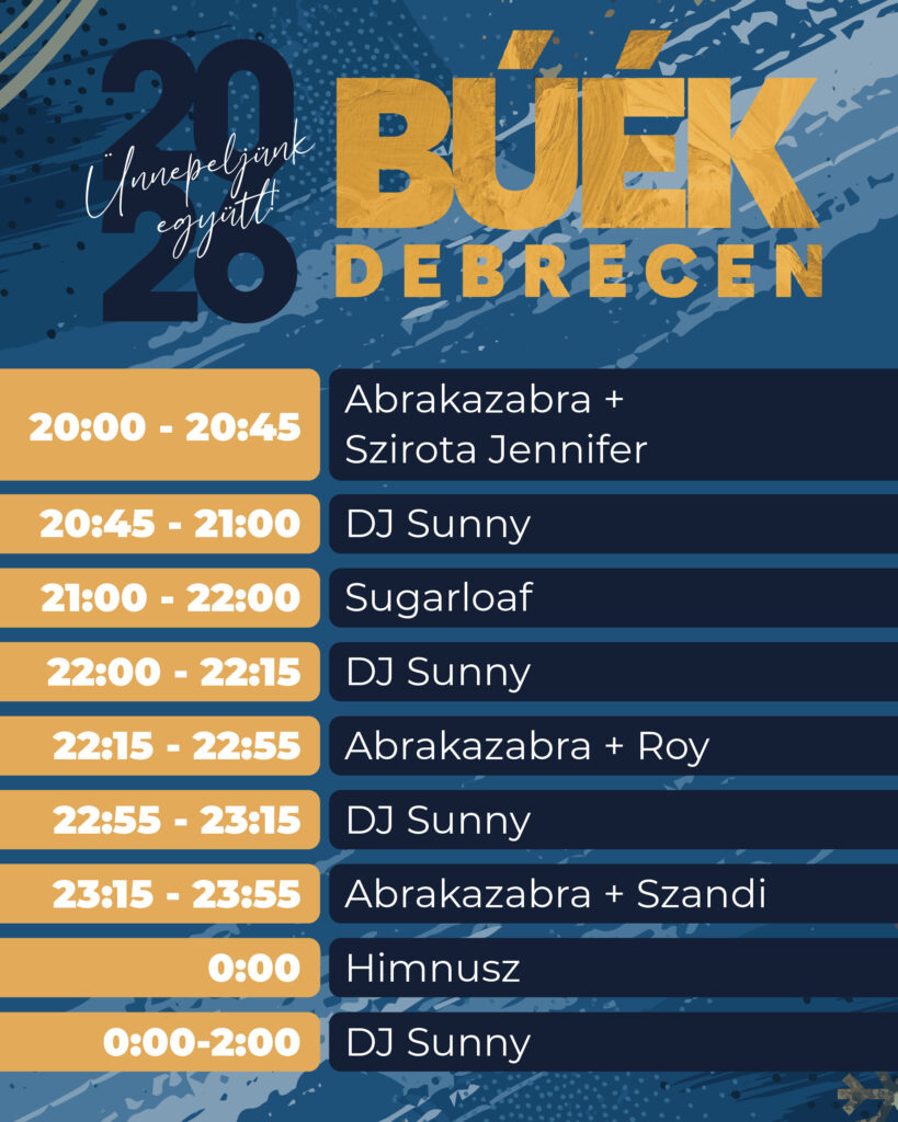 Éjfélkor közösen énekelhetjük a Himnuszt, majd a 2026-os év első óráiban DJ Sunny gondoskodik a jó hangulatról, egészen hajnali 2 óráig.